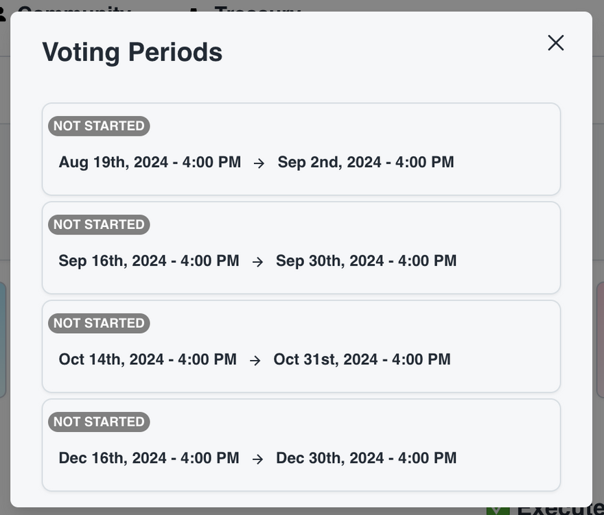This period has a start and end time during which a proposal can receive votes from the three tiers of governance bodies.