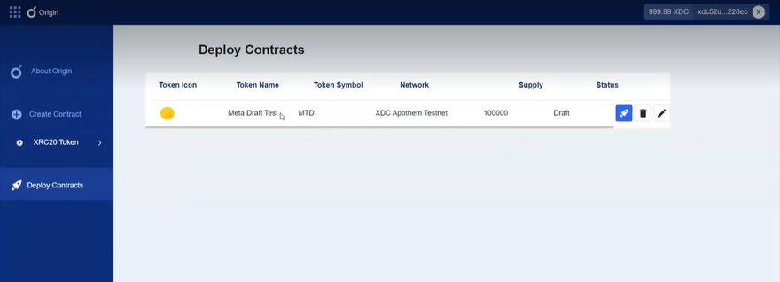 XDC Origin is a decentralized application (dApp) to create smart contracts and enable asset tokenization without custom programming expertise.