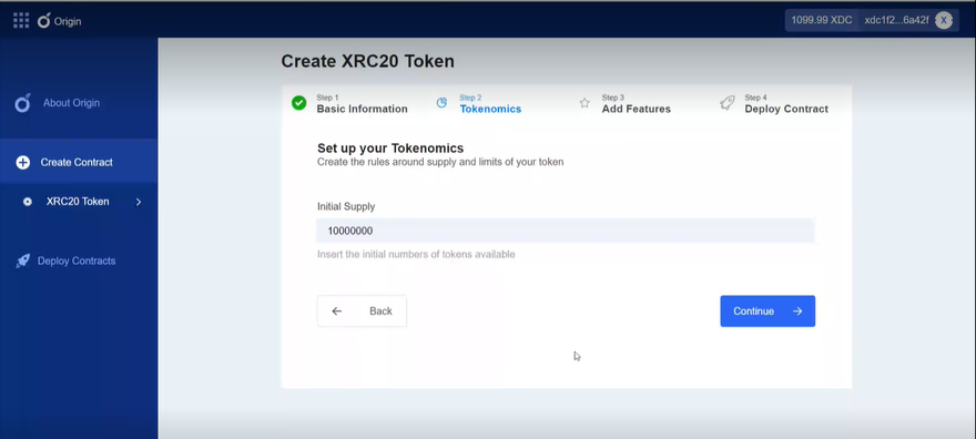 The purpose of XDC Origin is to simplify the process of token creation. Because this application automates smart contract creation and token generation, users do not need to be well-versed with the code construction.
