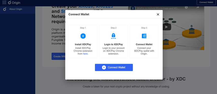1.Visit XDC Origin.