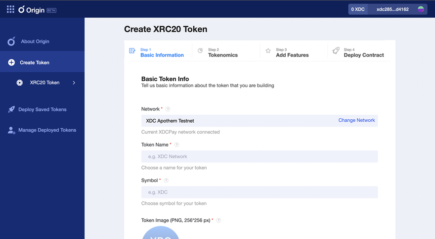With a comprehensive dashboard and user-friendly UI, XDC Origin serves as an advanced token generation dApp for XDC blockchain users. To create an XRC20 token on XDC Origin, complete the following steps: