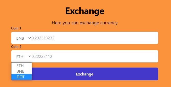 On this page, you can choose the cryptocurrency that you will exchange. (As seen in the screenshot below.) To perform an action, click the "Exchange" button at the bottom of the page.