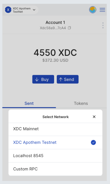 But all of these are mostly used if you're going to spend and do real transactions on the mainnet. For the developers, however, if you switch to a developer network such as Apothem Network, you will see this: