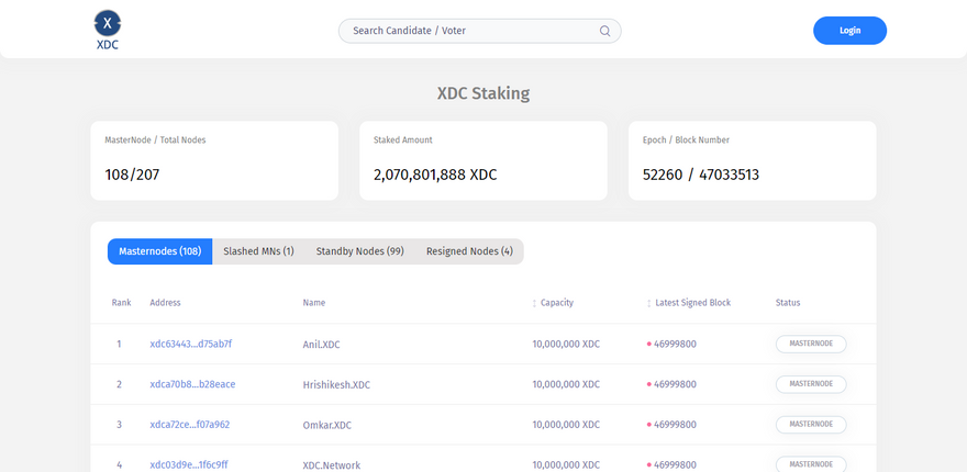 The Masternode App is a handy tool to view the details of masternodes running on the Network. Here, we have two different Apps for mainnet and testnet, XinFin XDC Network App and Apothem Network App.