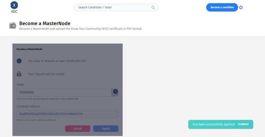 All the above screenshots are from Masternode App for Apothem Network. Follow the same steps to use Masternode App for XinFin XDC Network.
