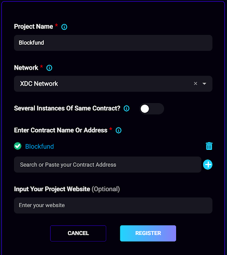 - Sync XDC projects: Connect any XDC project by providing a subgraph GraphQL endpoint or by selecting smart contracts from autocomplete.