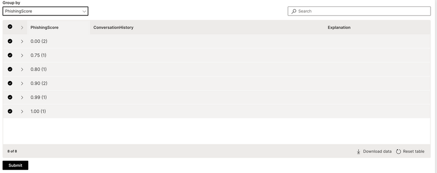 Analyze: Each email is analyzed by AI based on its content and metadata. The AI model scores each email and provides a detailed explanation of its findings.