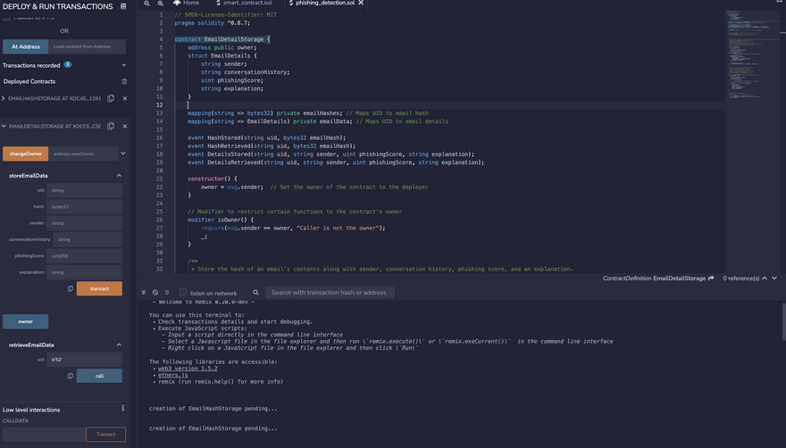 tx = contract.functions.storeEmailData(uid, email_hash, sender, conversation_history, phishing_score, explanation).build_transaction({