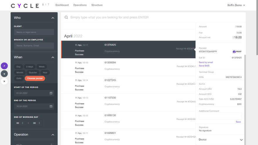 In order to use the Cyclebit services and get the opportunity to accept XDC payments you need to fill out this form.