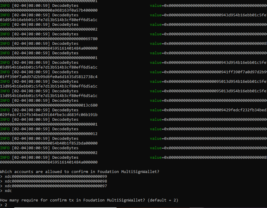 xii) Enter how many Foundation MultiSignWallet require to confirm tx default=2