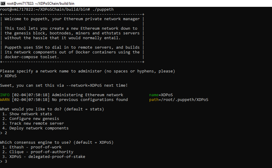 iii) Enter 3 to select XDPoS — delegated-proof-of-stake consensus