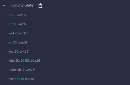 Example: In the below example, the contract SolidityTest demonstrates the above mentioned different types of bitwise operators.