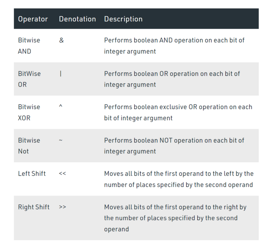These operators work at a bit level used to perform bit-level operations. Solidity supports the following arithmetic operators: