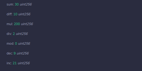 These operators are used to combine two or more conditions. Solidity supports the following arithmetic operators :