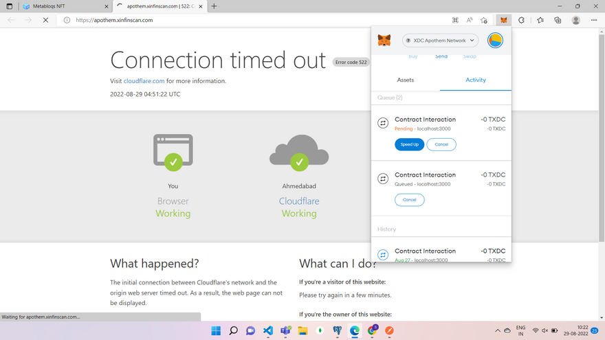 contract call's are not happening in MetaMask . it's showing pending for long time...It's XDC Network issue..?