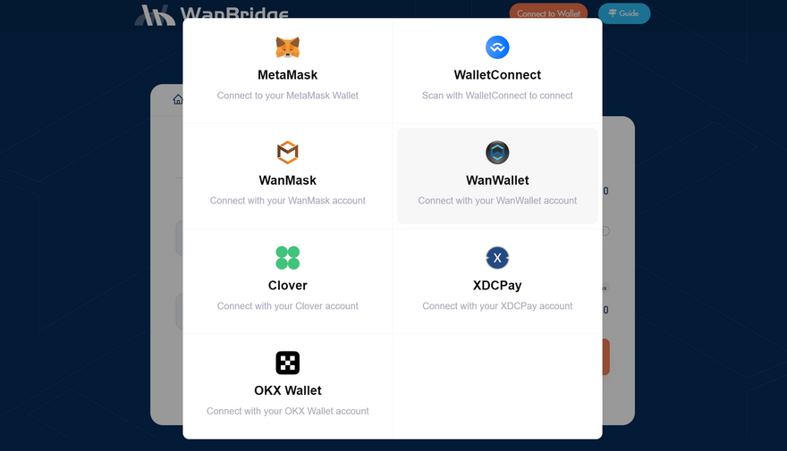 Head over to https://bridge.wanchain.org/#/ and connect your account through walet connect: