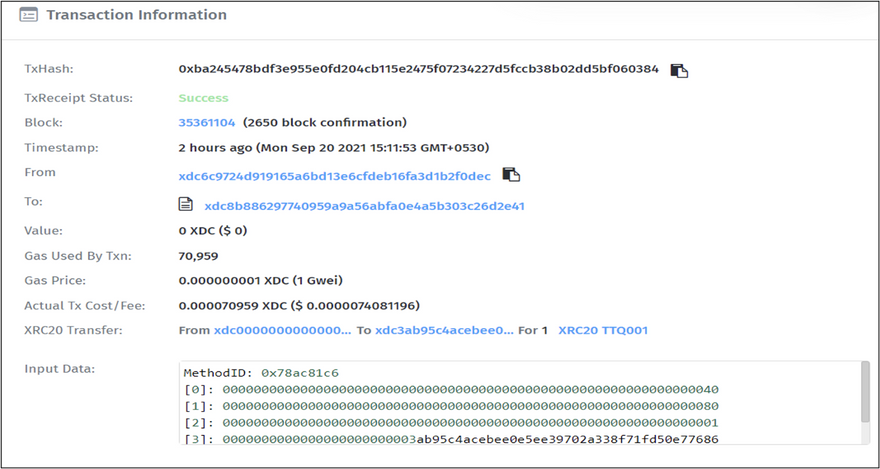 https://xdc.blocksscan.io/txs/0xba245478bdf3e955e0fd204cb115e2475f07234227d5fccb38b02dd5bf060384