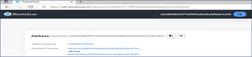 https://xdc.blocksscan.io/address/xdc8b886297740959a9a56abfa0e4a5b303c26d2e41