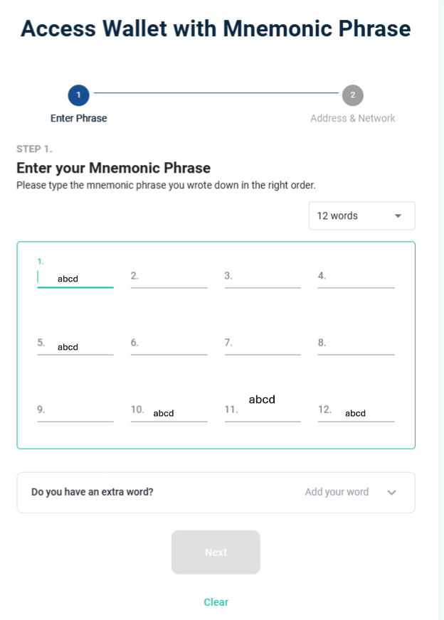I still can't find my address with my xdcs. The phrase and password are correct, it used to enter correctly. In the old xdcWallet, in box number 11, the word looked like the attached photo. Could it be related to the problem?