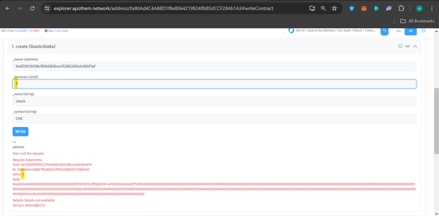 When I am trying to call create(address,uint8,string,string) from the Factory, I am getting an error which implies that the uint8 value that is getting passed as an argument, is being read as a value of the transaction, as shown in the below snapshots.