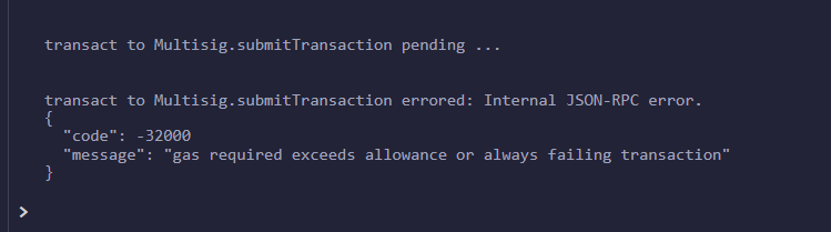 //function submitTransaction(address destination, uint value, bytes memory data) public returns (uint transactionId) {}