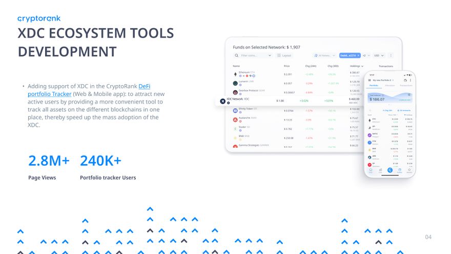 - XDC's support in the CryptoRank DeFi Portfolio Tracker to draw new users by offering a unified tool for asset tracking across blockchains.