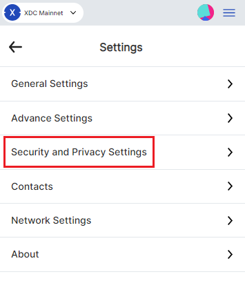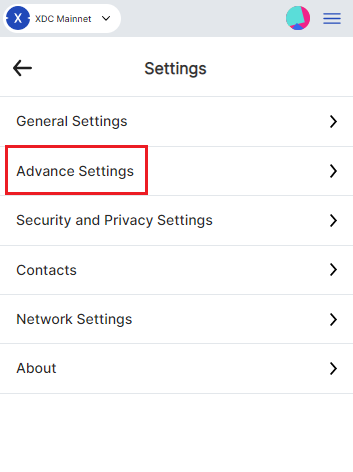 Step 1: Click on the Menu option (Find THREE lines on your right hand corner of the XDCPay Screen)