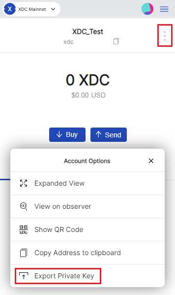 Step 1: Click on the THREE dots to view the Account options and Click on the “Export Private Key” option.