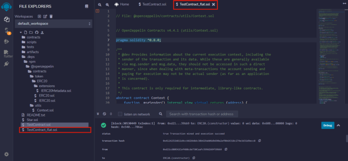 Step 2: Once you have clicked on the Flatten, another “flat.sol” contract will be added to your screen.