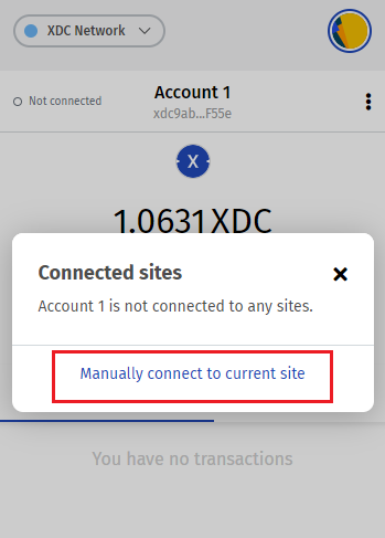If the DApp to which you're trying to connect doesn't automatically prompt you to connect your XDCPay, or for whatever reason you want to initiate the connection manually, follow these steps:
