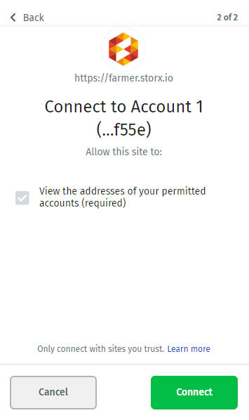 Now click on Connect button of the Farmer site to connect your StorX Farmer Site and you will be notified " Wallet Connected".