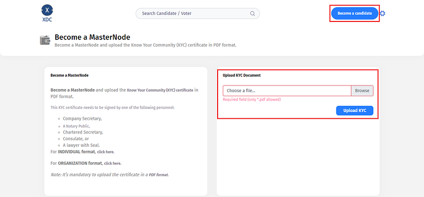Once you log in successfully; For KYC, you need to click on the “Become a candidate” button to submit your KYC.