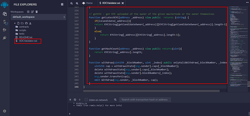 Step 2: Paste the copied code in XinFin Remix by creating one file name as “XDCValidator”.