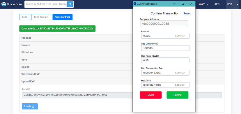 Step 3: Once KYC is uploaded successfully, they need to propose an XDC Masternode by calling Propose” function.