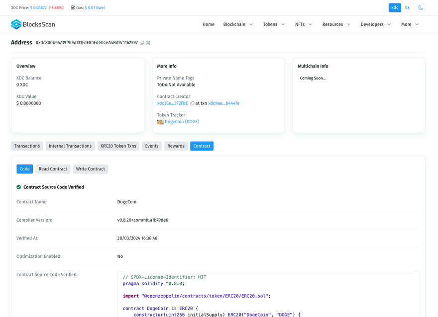 In the dynamic landscape of blockchain technology, creating and deploying custom tokens has become increasingly accessible. This guide will walk you through deploying and verifying a DogeCoin-inspired ERC20 token on the XDC Network using Hardhat. By following these steps, you'll gain practical insights into smart contract development and deployment on a real-world blockchain network.