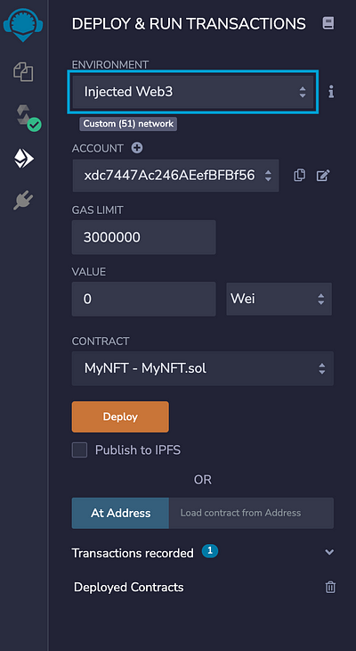 Step 1: Deploy an NFT contract with XinFin Remix
