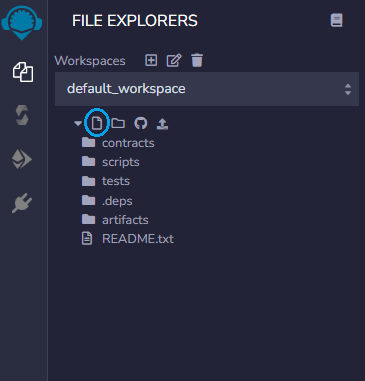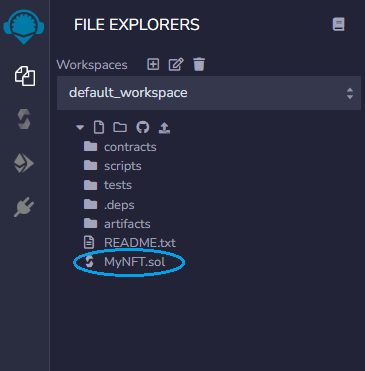 Let’s start by creating a MyNFT.sol file. To create a new file, click on the “Create new file” icon positioned at the top Left of the main screen.