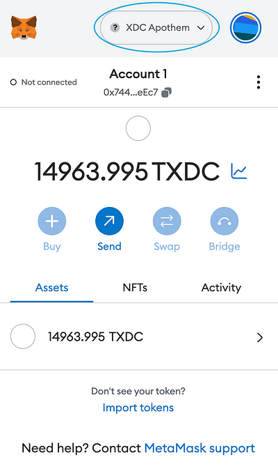 Make sure your MetaMask wallet is unlocked and connected to the XinFin Apothem network.