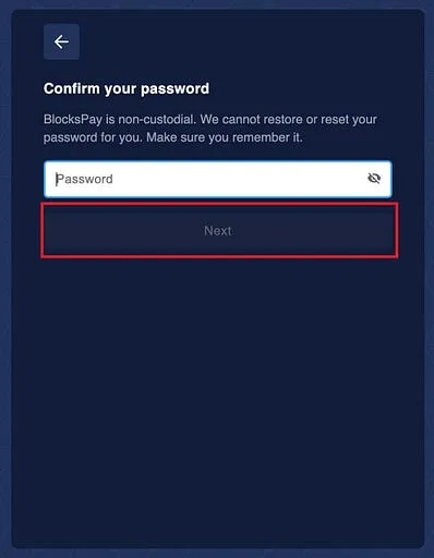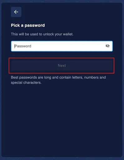 Step 4: Now, create a new password to unlock the wallet. Once you enter the password click on the “Next” button.