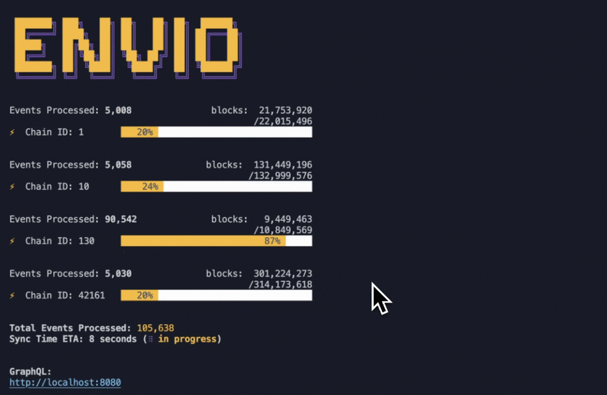 Envio offers the flexibility and scalability your project needs as it grows and evolves. Our robust features and developer-friendly interface make it the ideal data indexer for any app aiming to scale efficiently in the blockchain space.