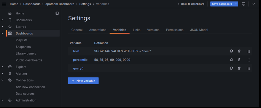 If you need to set up multiple data sources to view in the same dashboard, you can create a new variable in the dashboard to query the corresponding data.