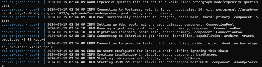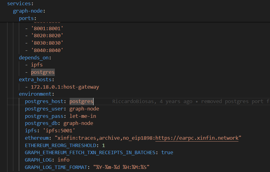 We were trying to run a graph node using XDC Mainnet Archive node's URL, along with the following docker compose configuration