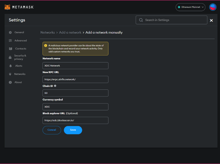 MetaMask does not use the xdc prefix for an XDC Network wallet address so make sure you replace xdc with 0x when transacting with MetaMask. You can try a small test transaction using the 0x prefix before sending any significant amount of funds just to be safe. You can add other wallets, such as XDC web wallet, to MetaMask as well if you have your key.