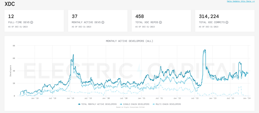 I am proud to share that the XDC Network had another increase in full-time developers and total developers on Electric Capital’s most recent developer report. On December 14th, the XDC Network registered 14 full-time developers – although the report ended on December 31st with 12 developers.