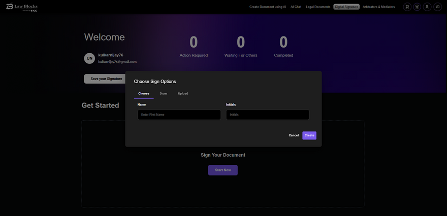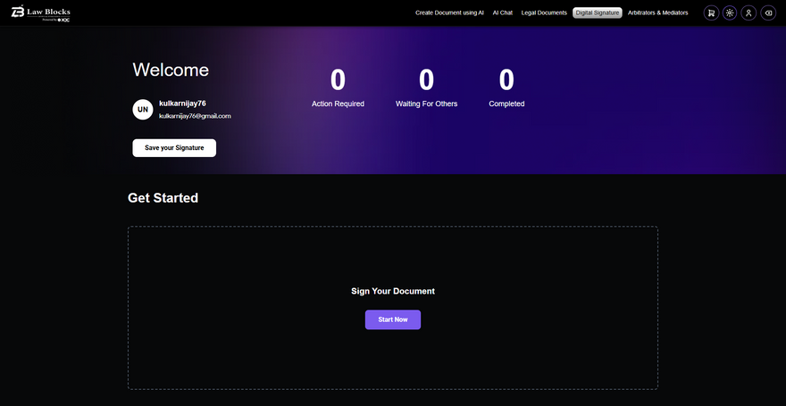 To use Digital Signatures on Law Blocks AI, you’ll first need to register. If you haven’t signed up yet, check out our quick guide to get started.
