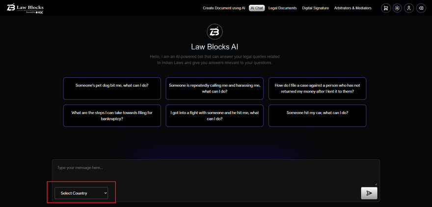 - Pick your country from the “Select Country” dropdown at the bottom of the chat window to make sure the answers fit your local laws