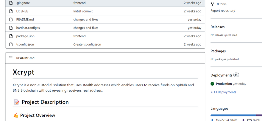 xcrypt was xdc project in eth toranto now its converted into bnb chain the user has deleted the xdc integration and replaced the word xdc with bnb in description as well dorahacks.io/buidl/7182