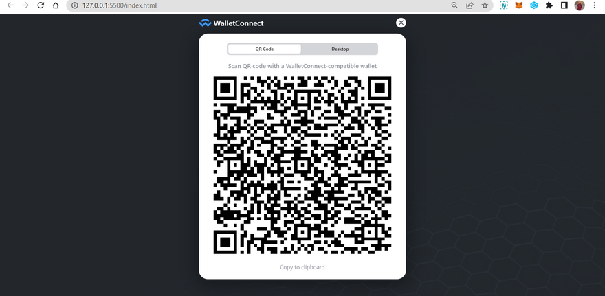 Step 2: Click on the “Connect Wallet” button, it will pop up the QR code to scan.