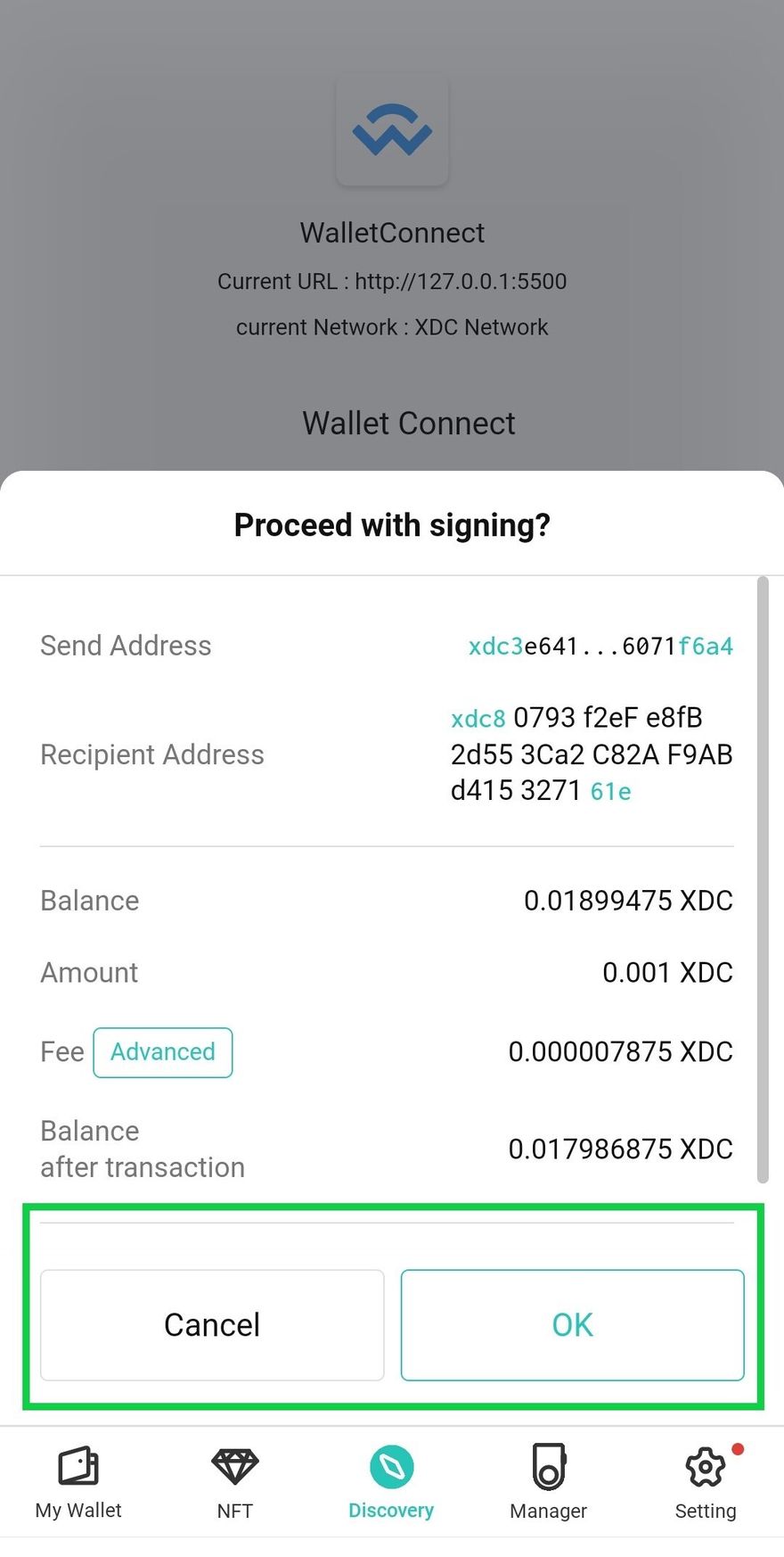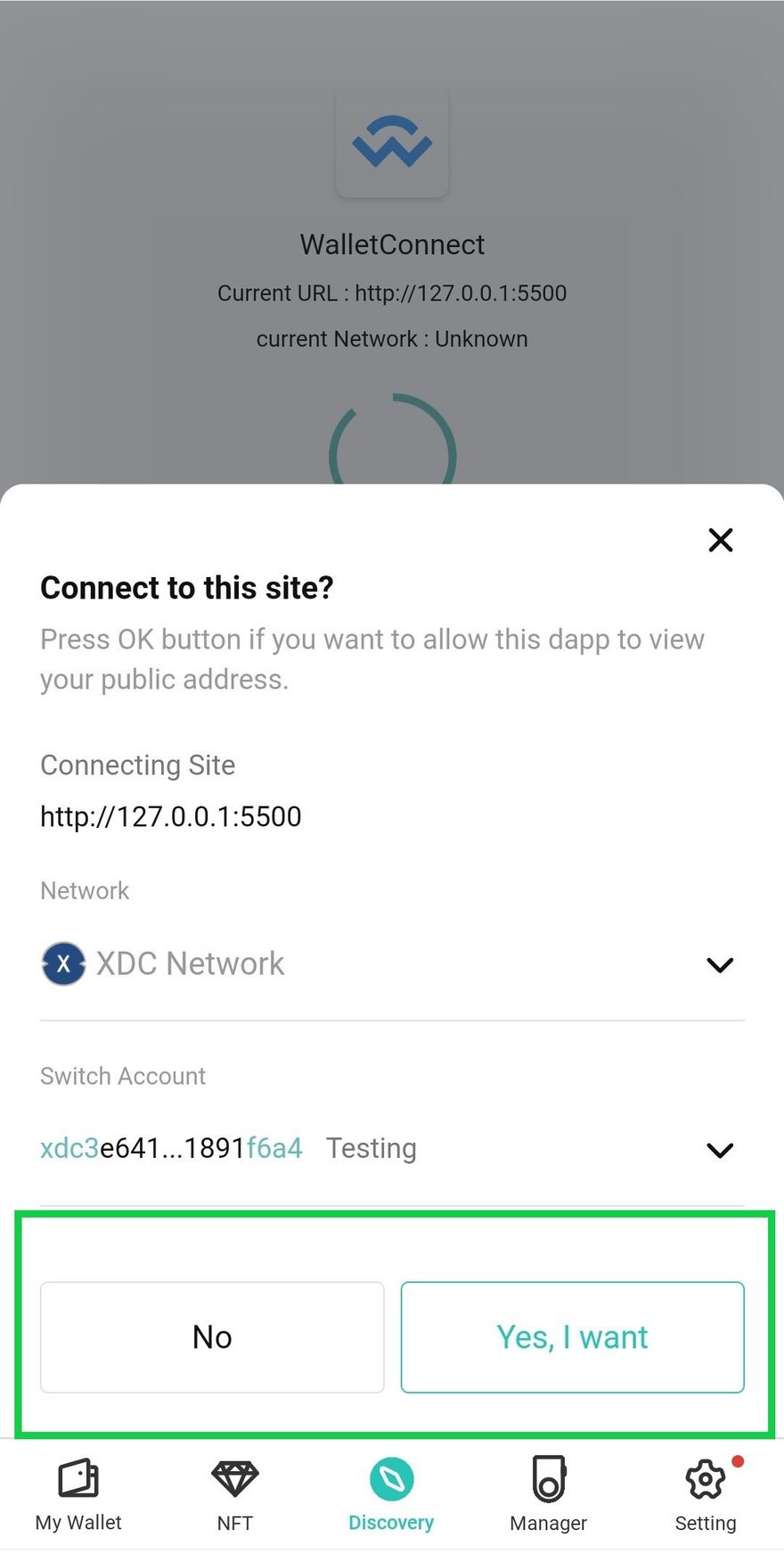 Step 4: Now, you can select the network as XDC Network and address which you want to connect to the app. Your wallet will be successfully connected to the app.