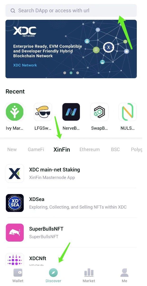 Step 4: Click âDiscoverââ on the bottom to enter the DApp page, and you can find DApps directly on XDC network. Whatâs more, you can also search or input the link of the DApp you want on the top to enterâ ď¸Be aware of your assets safety when you enter the third party